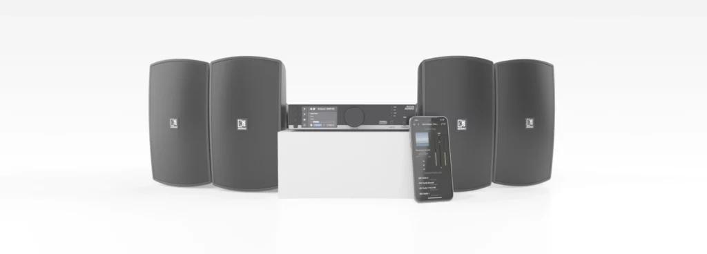 Aktywne głośniki: Głośniki z wbudowanym wzmacniaczem, idealne do zastosowań w różnych przestrzeniach komercyjnych.
